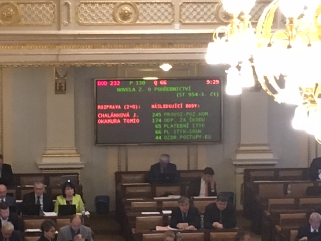 V pátek 28. 04. 2017 se v Poslanecké sněmovně odhlasovalo přijetí novely zákona o pohřebnictví. Tato novela prošla bez pozměňovacích návrhů.